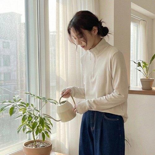 [핑크엘리제]하이넥 반집업 데일리 이지웨어 모데르집업탑