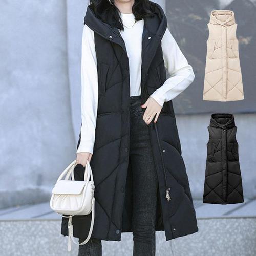 [굿쇼핑몰_의류]페미닌 하이넥 후드 슬림핏 캐주얼 롱 패딩 베스트