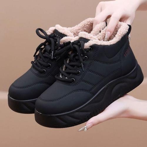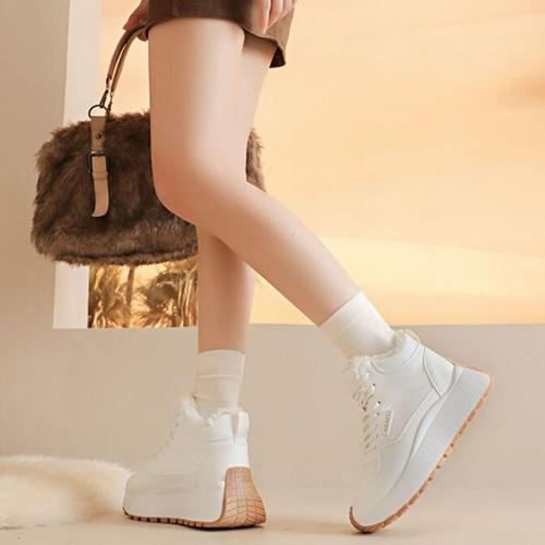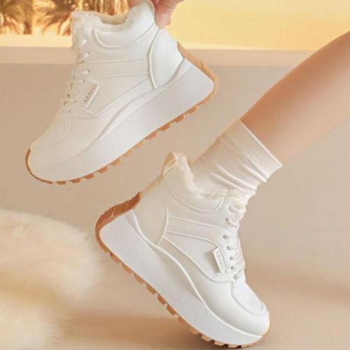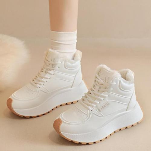여성용 일상용 포근한 털내장 하이탑 스니커즈