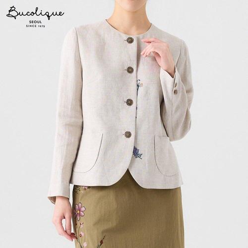 [비꼴리끄]린넨 자수 노카라 자켓 B262WJ3020