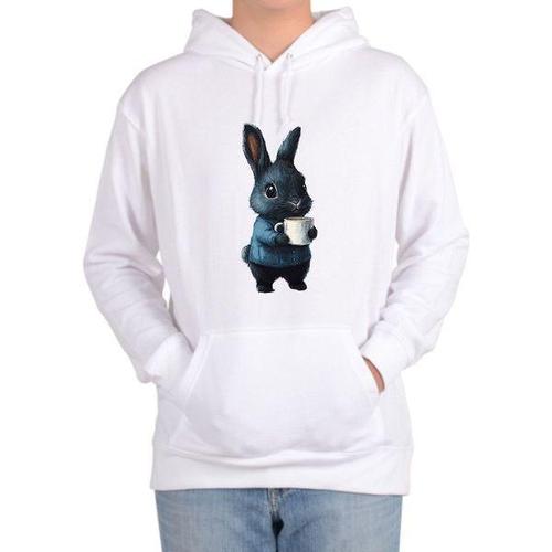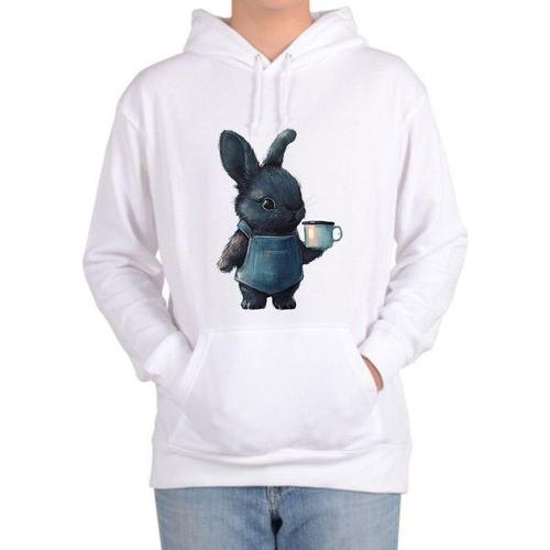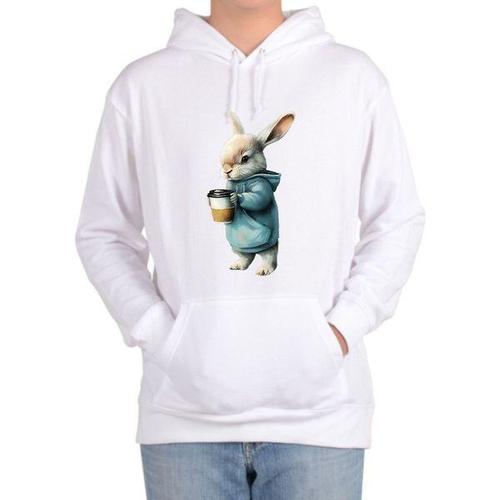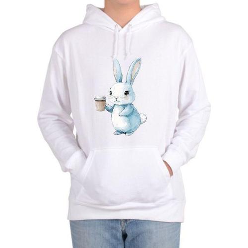 [에이치플러스몰]후드티 전사이즈 흰토끼 커피 모닝커피 래빗