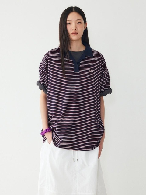 [스튜디오 톰보이] 스트라이프 오버핏 카라 반팔 티셔츠_네이비 9176222997