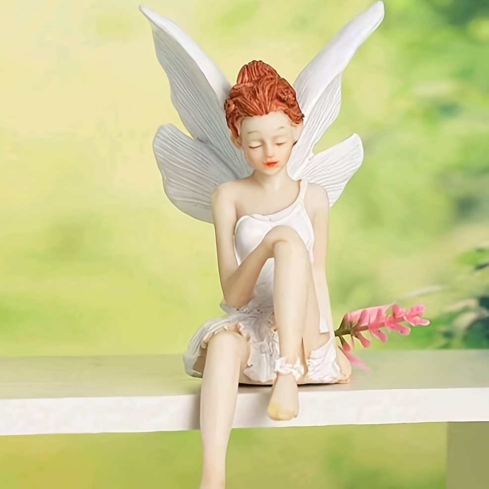 TEMU 레진 요정 정원 장식품 1개, 앉아 있는 보라색 판타지 요정 조각상 (날개 포함), 가정 및 정원 장식용