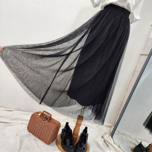 빅사이즈 볼륨 여신 발레 2중 레이스 하객패션 튜튜 로맨틱 망사 롱 샤스커트
