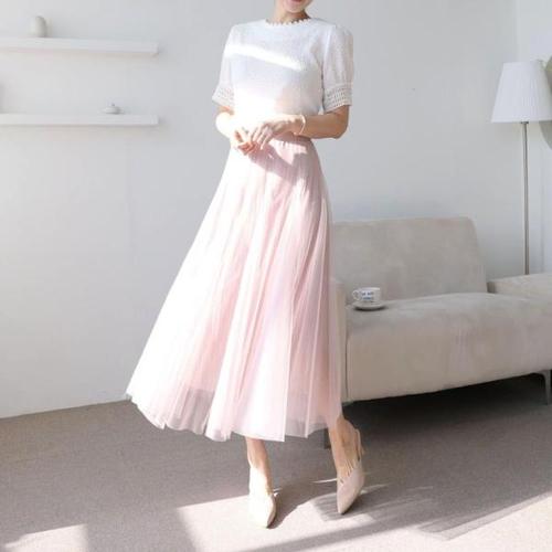 [옷자락]여자 튜튜 핑크 살랑 망사 봄치마 롱스커트