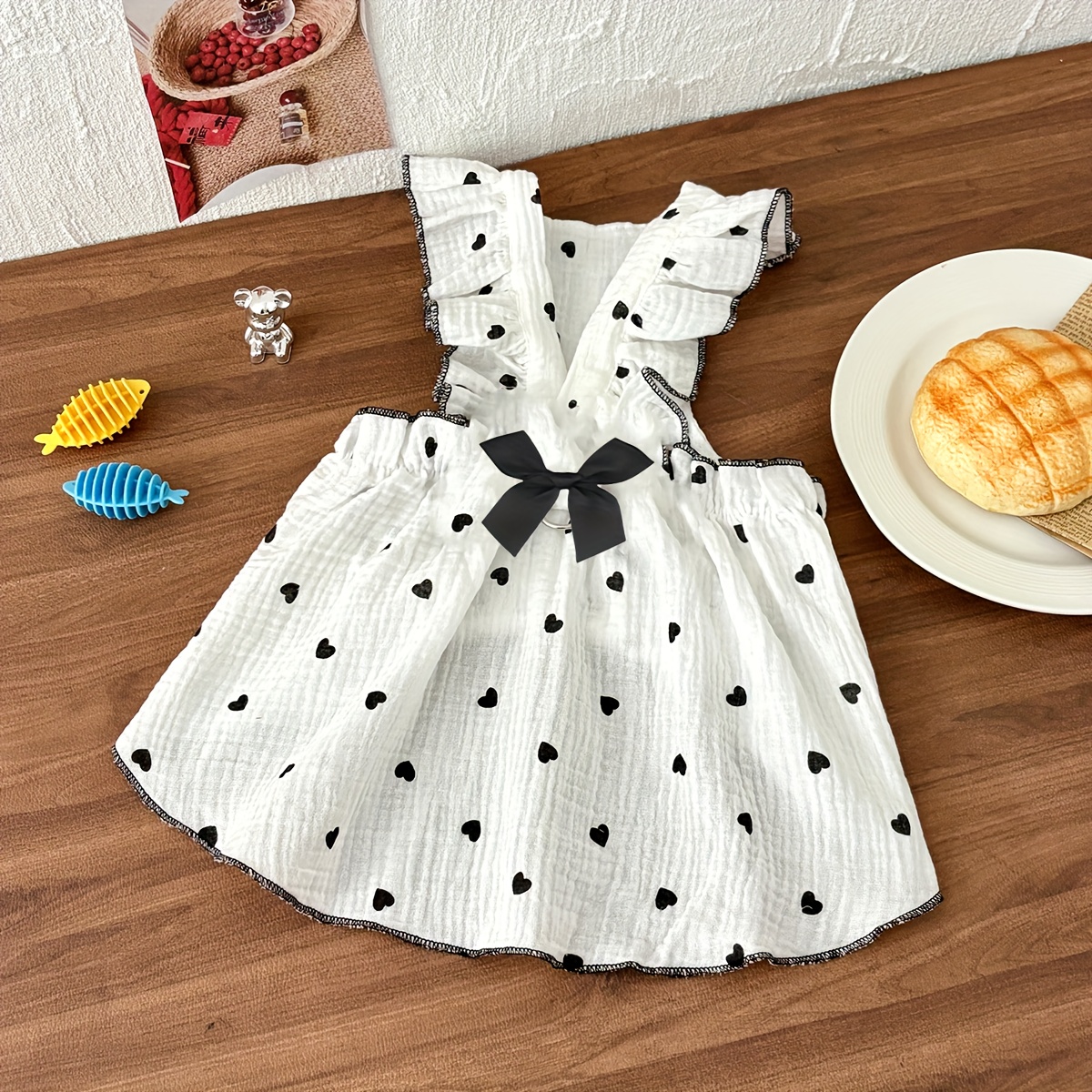 TEMU 귀여운 하트 프린트 강아지 드레스 (리본 장식) - 생일 및 휴일에 완벽한 멀티컬러 옵션 - 소형, 중형, 대형견 사이즈 제공