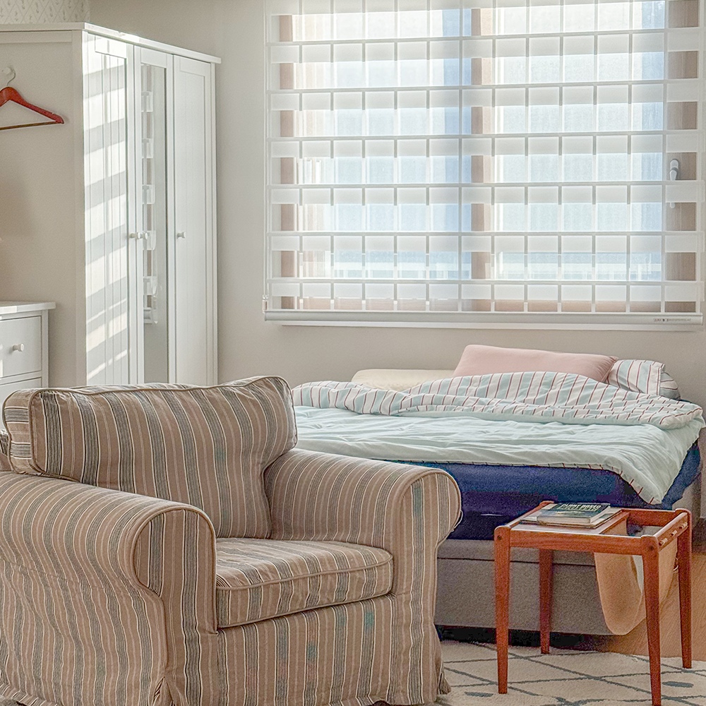 [오늘의집 단독] 한복쉐이드2 고유 / 전동 베란다 거실 창문 자동 블라인드 트리플쉐이드
