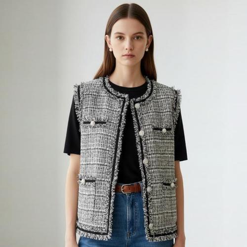 [넬리]리카 프린지 트위드 베스트_ND2VE500