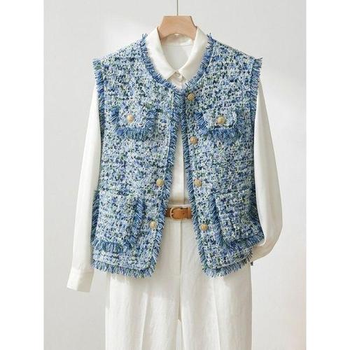 아이엠몽 여성 포켓 버튼 포인트 트위드 베스트