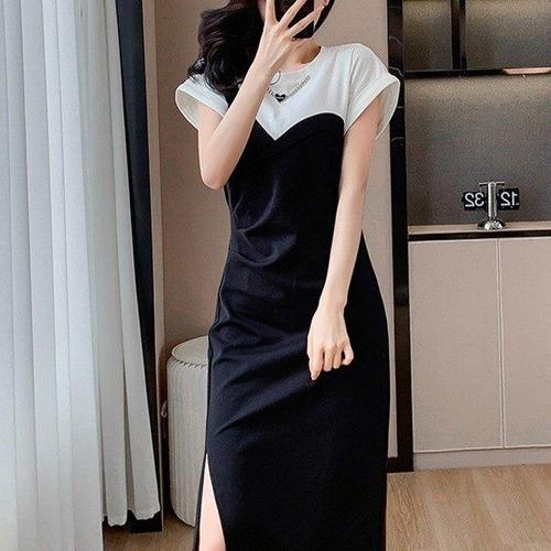 [유야]여성 시원한 옆트임 스판 무지 반팔 롱원피스 -FOP0620- 여름