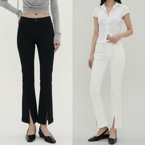 [옷자락]여성 일상용 스판 슬림핏 밑단 트임 세미 부츠컷 슬랙스