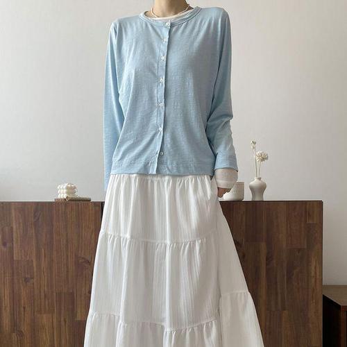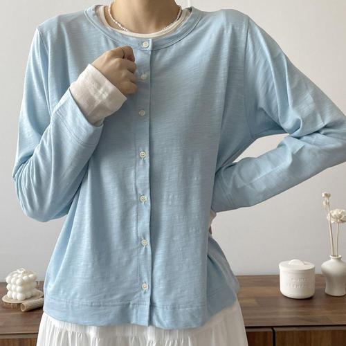 [신상오픈런]여성 라운드 긴팔 면가디건 파스텔톤 여리여리 스타일