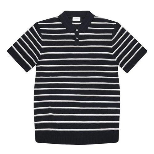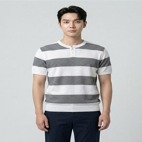 [BY파크랜드][오스틴리드]화이트 스트라이프 버튼마에 라운드넥 니트-A6TY2411077B