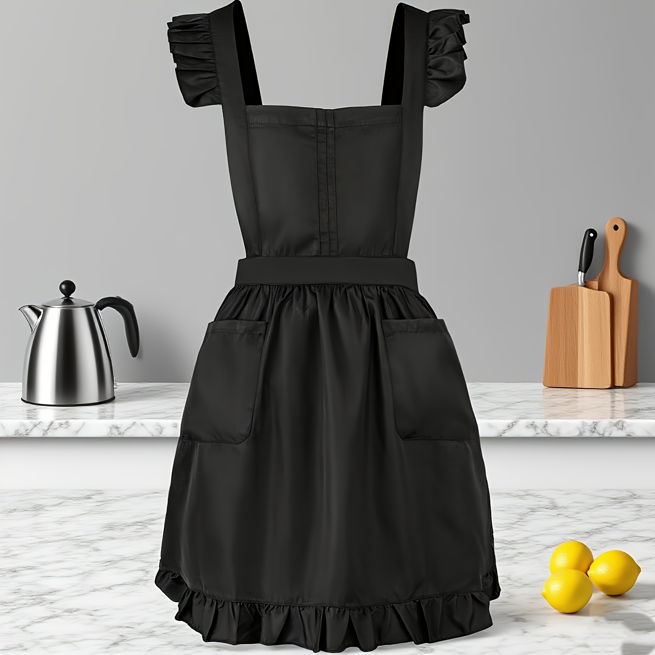 TEMU 블랙핑크 화이트 롱 귀여운 프릴 앞치마 - 요리, 레스토랑, 가족 모임, 할로윈, 크리스마스, 휴일 파티, 코스프레용