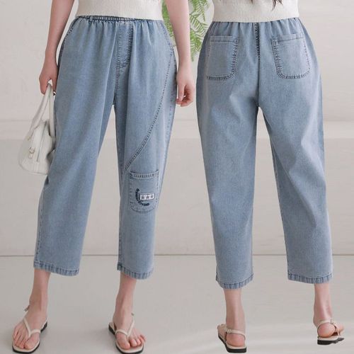 여자 캐주얼 중청 워싱 8부 데님 팬츠