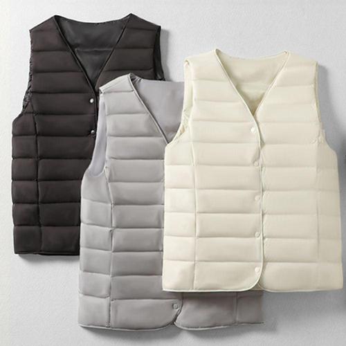 세군다 여친 캐주얼 빈티지 브이넥 다운 민소매 베스트 집업 조끼 DOS1