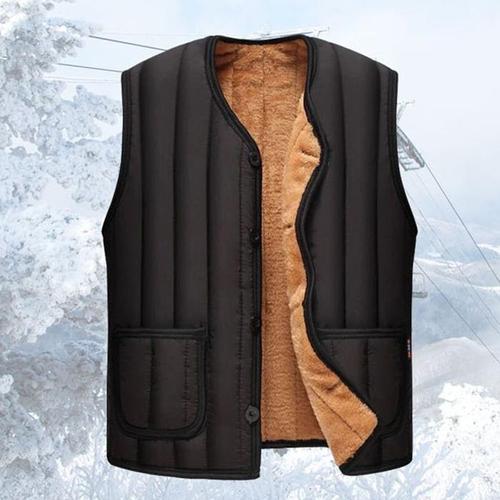 [셀럽하우스]중년 KWYU7477 털 패딩 조끼 민무늬 브이넥 단추