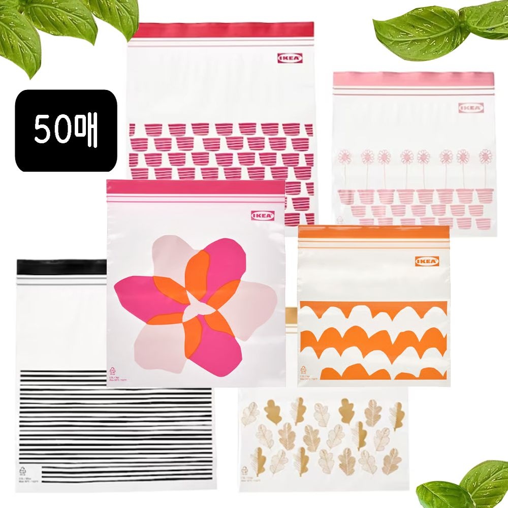 이케아 이스타드 미니 지퍼백 60매 플라워 꽃패턴 소분봉투 다회용 소형 지퍼백