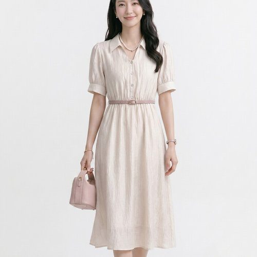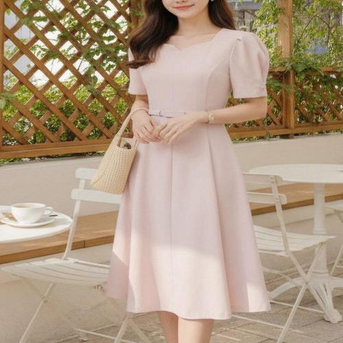 NO983 깔끔 허리 벨트 퍼프 반팔 카라 원피스