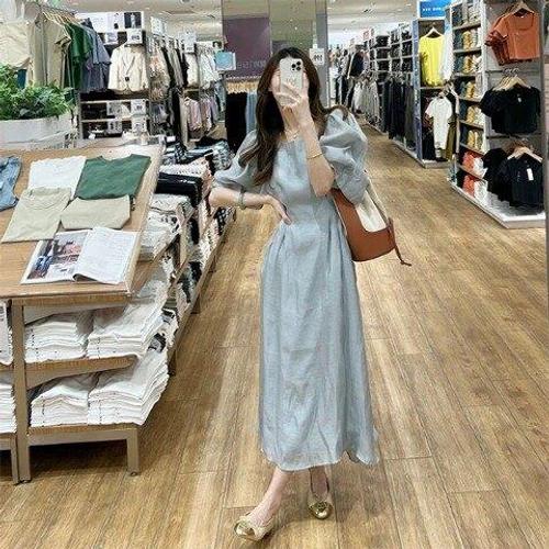 [아리엘스타일]스퀘어넥 여리핏 퍼프롱원피스 엔스왈롱원피스