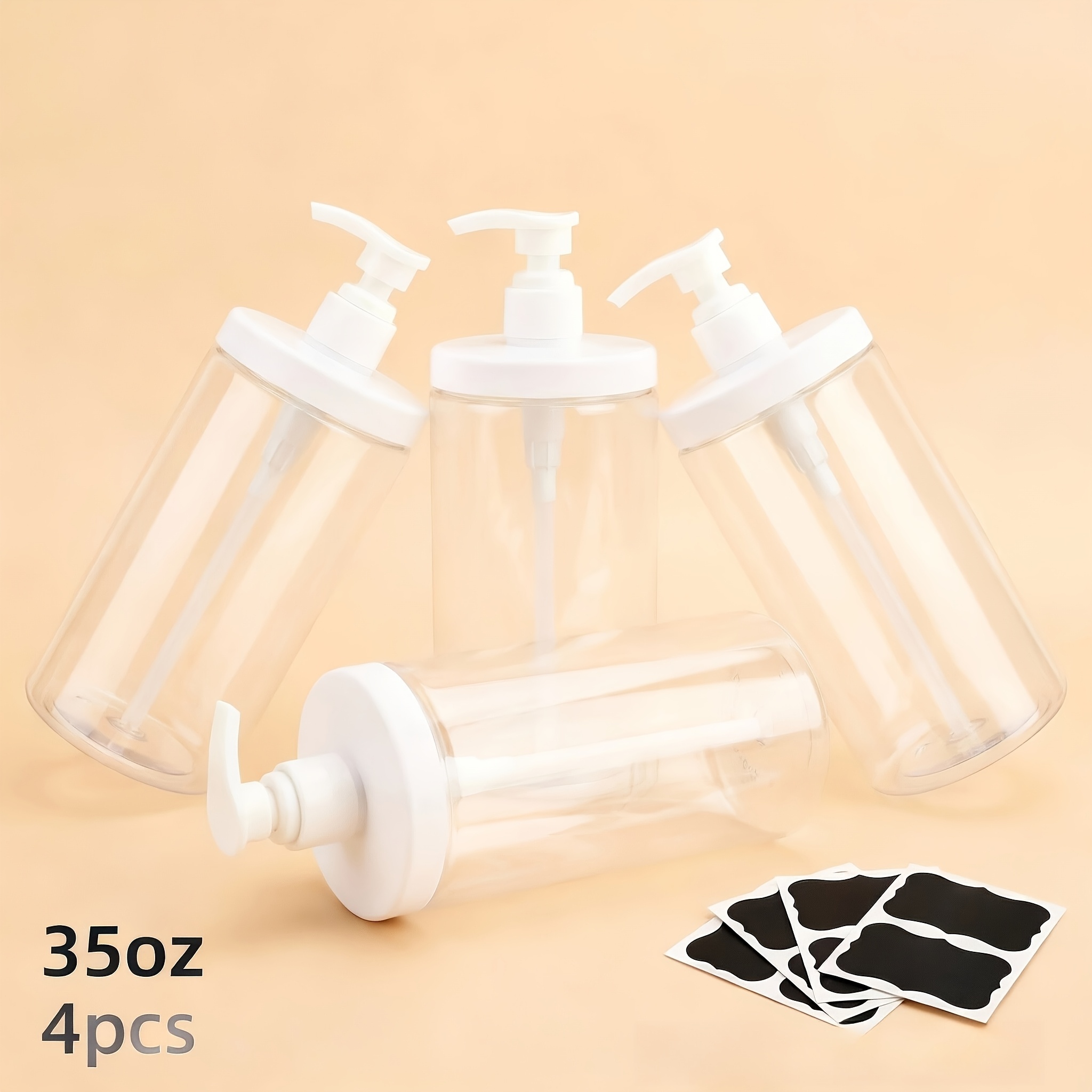 TEMU 펌프 병 디스펜서 플라스틱 펌프 병 리필 가능한 병 와이드 마우스 자르 스타일 빈 펌프 병 욕실 샤워 용기 로션 샴푸 컨디셔너용 (화이트, 4X 1000ml)