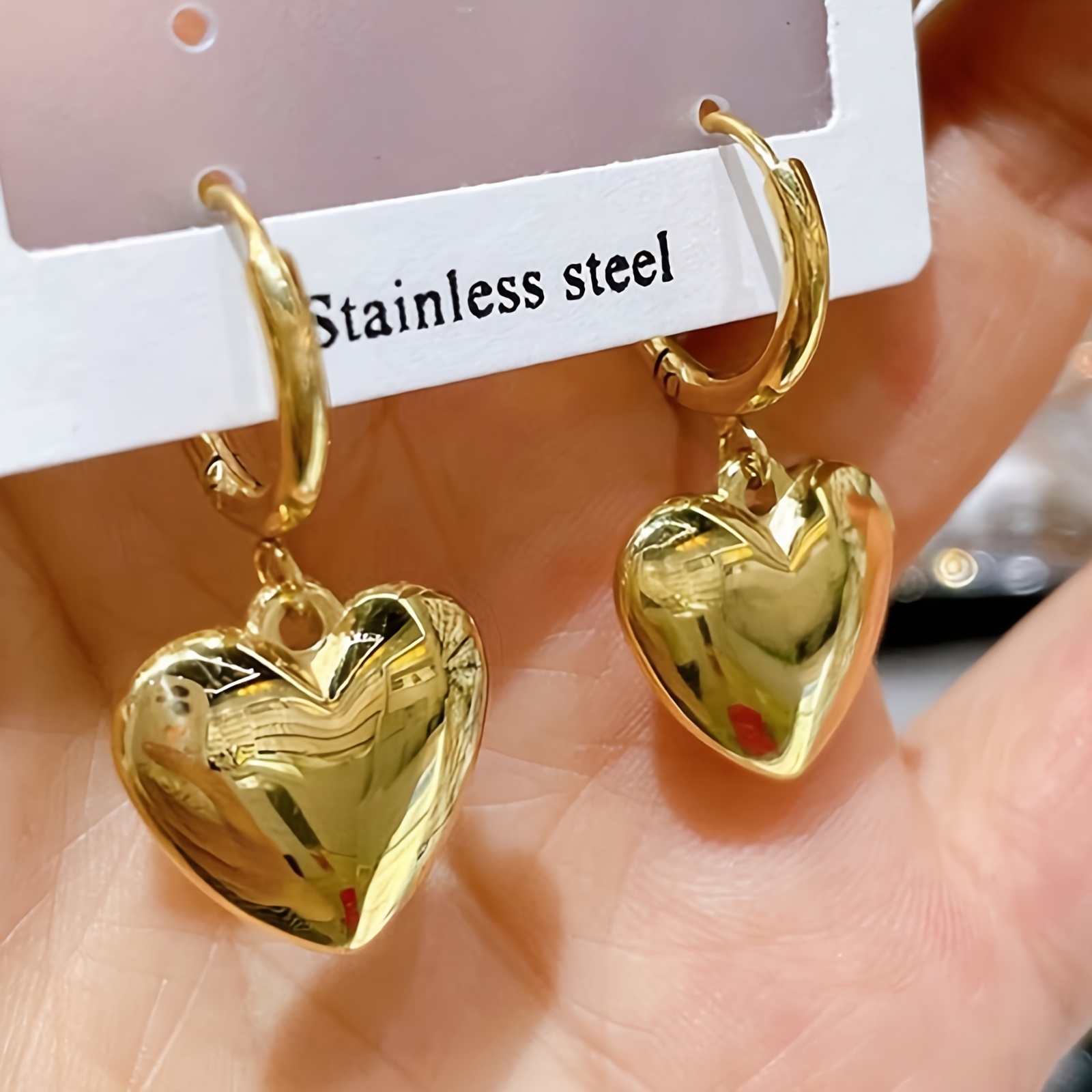 TEMU 2개 18K 금도금 스테인리스 스틸 하트 두꺼운 펜던트 귀걸이, 여성 선물, 발렌타인데이, 어버이날, 엄마 또는 여성 친구를 위한 선물, 고품질 스테인리스 스틸 여성 후프 귀걸이, 18K 금도금 내마모성 변색 방지