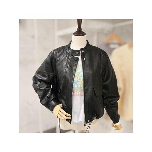 [페이지플린]F6AJK002A 버튼 집업 스트링 레더자켓