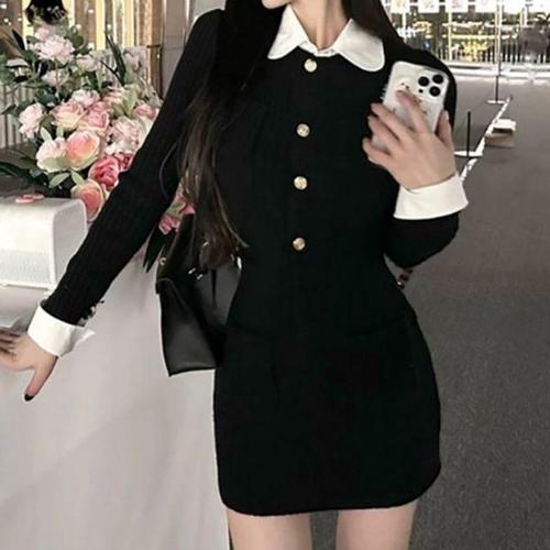 [오너클랜]인기상품 이쁘다요 카라 블랙 금장버튼 원피스 미니 페이크레이어드 [WFLMN97_260419]
