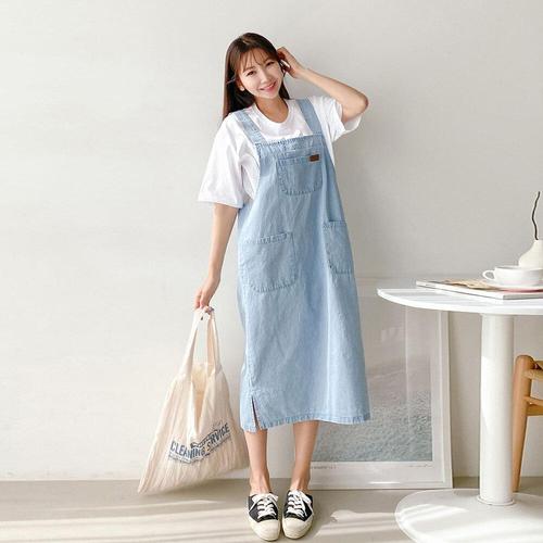 여성 여름 쓰리포켓 루즈핏 데님 멜빵 청 원피스 치마
