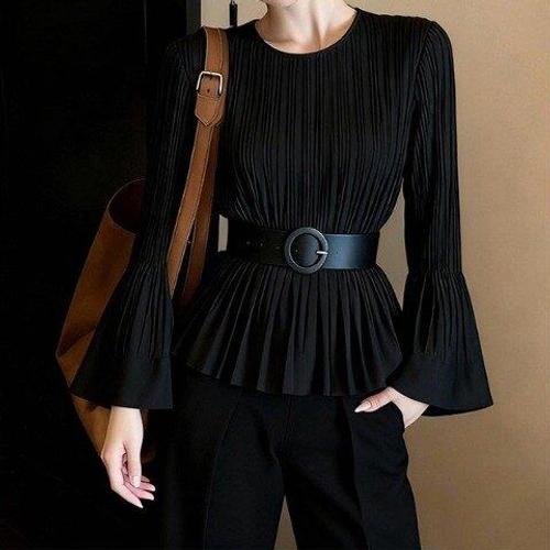 [아리엘스타일]플리츠라인 벨트핏 페플럼블라우스 마뉴플리츠블라우