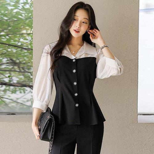 [시크릿라벨] [일체형/하객룩] 페플럼 레이어드 블라우스