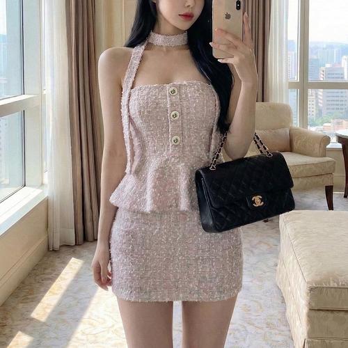 [옷자락] 여자 페플럼 트위드 오프숄더 미니 투피스