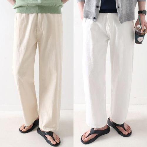 [지지블랙]시원하고 허리가 편한 썸머 프리미엄 도티 세미와이드 린넨 코튼 팬츠 여름 쿨링 뒷밴딩 면바..