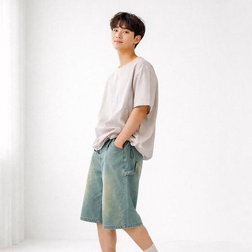 [보슈아]남자 와이드 버뮤다 청반바지 밴딩 카펜터 편한 데님 반바지 sado 2009M