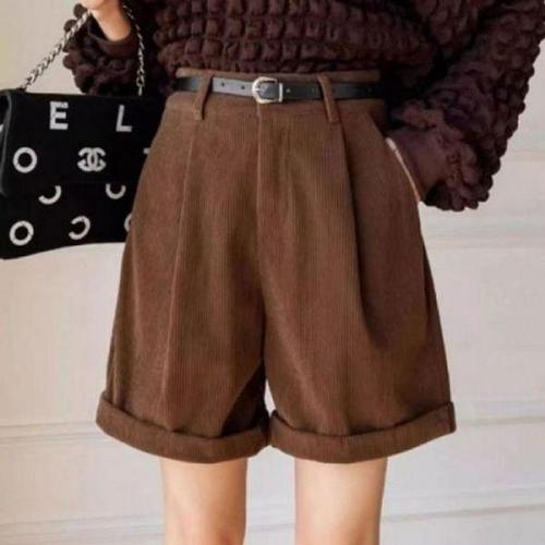 [에이치플러스몰]여름 여성 핀턱 반바지 하이웨이스트 롤업 면 편한