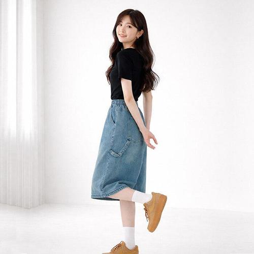 [보슈아]여자 와이드 버뮤다 청반바지 밴딩 카펜터 편한 데님 반바지 sado 2009W