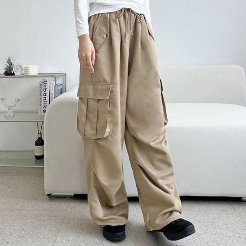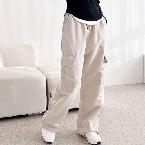 [에이치플러스몰]양포켓 카고 여성 스트링 와이드 조거 팬츠 일자 바지