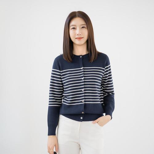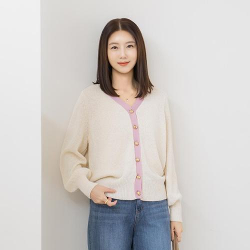 [더나무그림] 여성 배색 레이어드 라운드넥 니트 가디건 NCP1CD002 차밀키이중R1Y