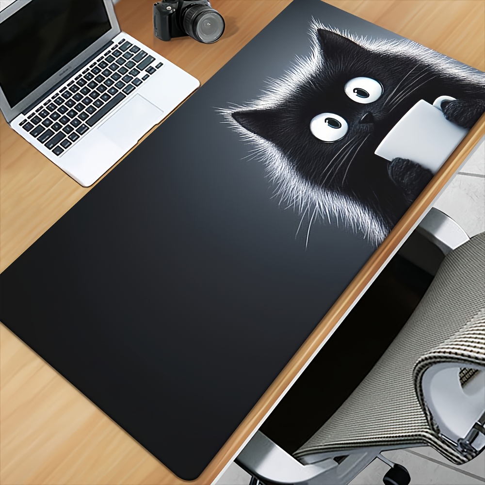 TEMU 1개 특대형 게이밍 및 사무실 데스크 매트 – 미끄럼 방지 XXL 마우스 패드 및 귀여운 검은 고양이 디자인 작업 공간 보호대, 미끄럼 방지 고무 뒷면, PC, 데스크탑용 내구성 표면, 성인, 게이머, 고양이 애호가를 위한 이상적인 선물, 매력적인 디자인