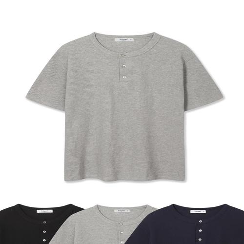 [폴리그램]와플 헨리넥 반팔 티셔츠 - 3 COLOR