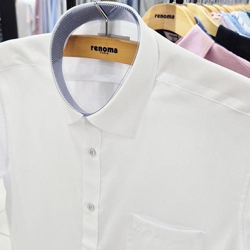 [레노마셔츠]일반핏/반소매/폴리스판 평직 솔리드 여름 반팔와이셔츠 RQUSG1601 WH_US
