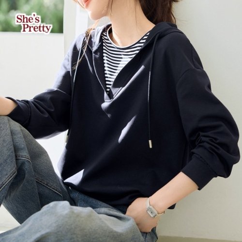 [쉬즈프리티] 스트라이프레이어링후드맨투맨