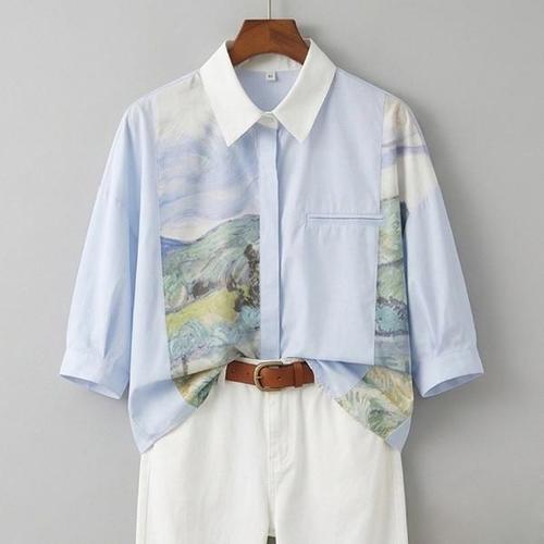 [넬리]디콜 유니크 프린팅 셔츠_ND2BL005