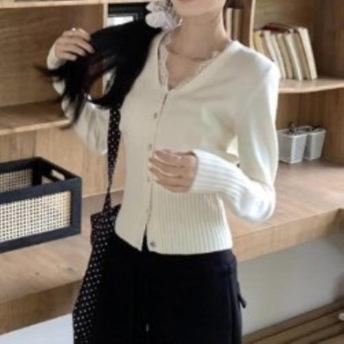 [옷자락]여성 슬림핏 여리여리 프릴 레이스 골지 니트 카디건