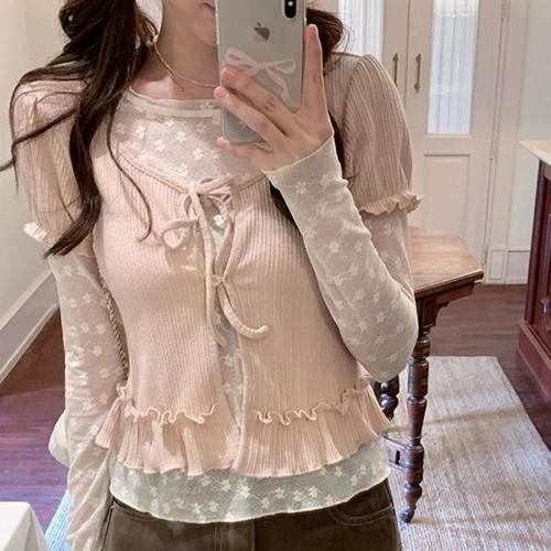 [옷자락]여자 봄 여름 레이어드 프릴 시스루 가디건 세트