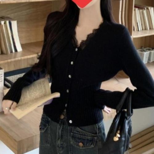 [다잇템]여성 롱슬리브 단추 포인트 레이스 V넥 카디건