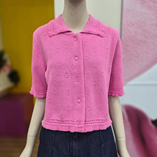 [옷자락]여자 슬림 브이넥 펀칭 프릴소매 니트 가디건