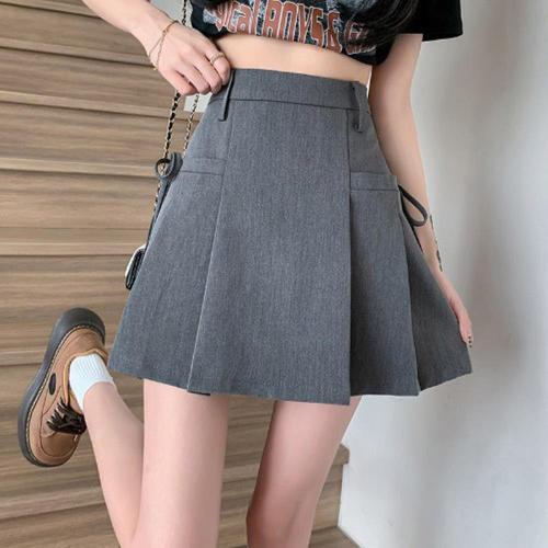 새로운 블랙 포켓 반바지 스커트 여성 기본 안전 바지 스커트 학교 플레어 캐주얼 미니 스케이터 미디엄 플리츠 플러스 사이즈 4XL