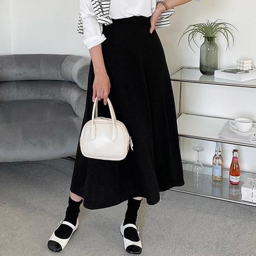 캐럿 여성 사계절 롱 플레어 스커트