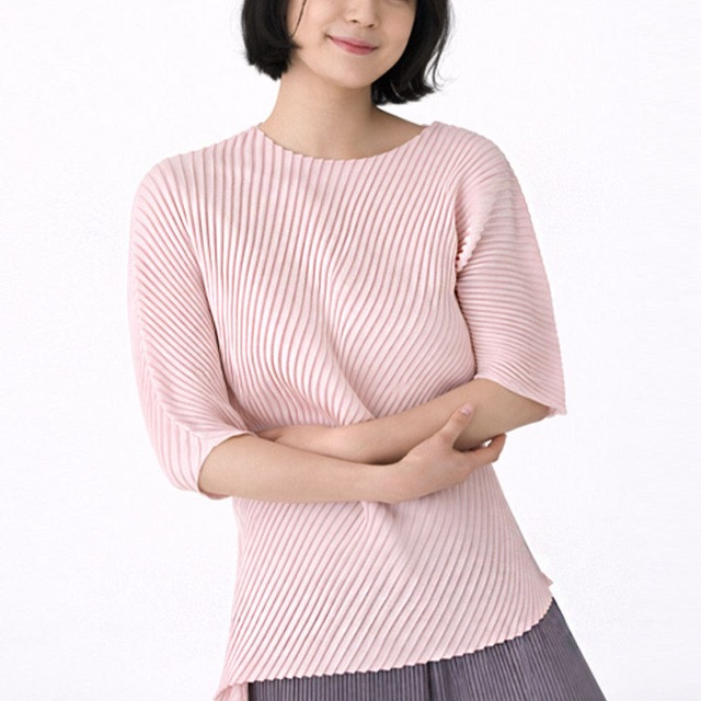 [플리츠미](대구신세계)V넥 피아노 플리츠 티셔츠_EPTSM324010